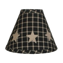 Here is a new smaller lamp shade, this is called the Black & Tan Star 10" Shade , This Lampshade is a Crafted from high-quality cotton applique, its black and oat tones make a cozy, primitive, and country aesthetic. Featuring a striking star design, this shade measures 4" across the top, 10" at the bottom, and stands 8" tall, making it an elegant and functional choice for your space. The self-biased trim and side stitching provide a handcrafted feel while ensuring long-lasting durability. Perfect for enhancing warm and rustic vibes, this lampshade adds a unique focal point to any room. Transform your lighting with this beautifully detailed and versatile piece. And is a clip shade, i have wrought iron floor lamps listed separately that this shade would look great one and ones with star tops, while they last