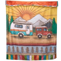 Here is a new Camper plush Throw Blanket and a Happy Camper Kitchen Towel, you will get both items, This has a vibrant scene of a jeep and camper in the wilderness with colorful geometric patterns and a coordinating solid color on the back. Design is replicated from original hand illustrated art with wood burned details. This Camper blanket is machine-washable for convenient cleaning. measures 50 inches by 60 inches for plenty of cozy coverage, and the Kitchen Towel is A jacquard woven kitchen towel featuring an all-over design with "Happy Camper" sentiment and measures 28 inch by 1 inch, nice items for a camper lover and makes nice decor in a camper, and i have 2 more pairs left while they Last ,And check out my other decor and lighting i carry, Thanks for shopping