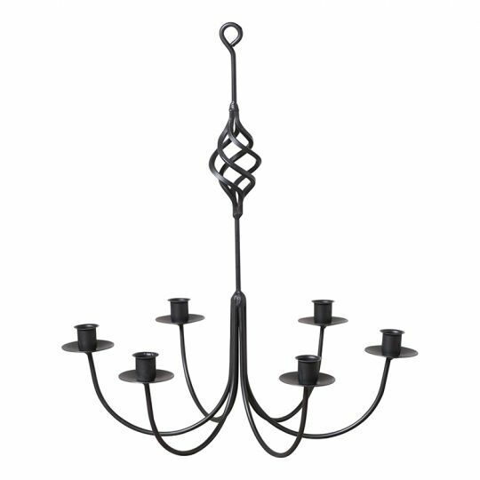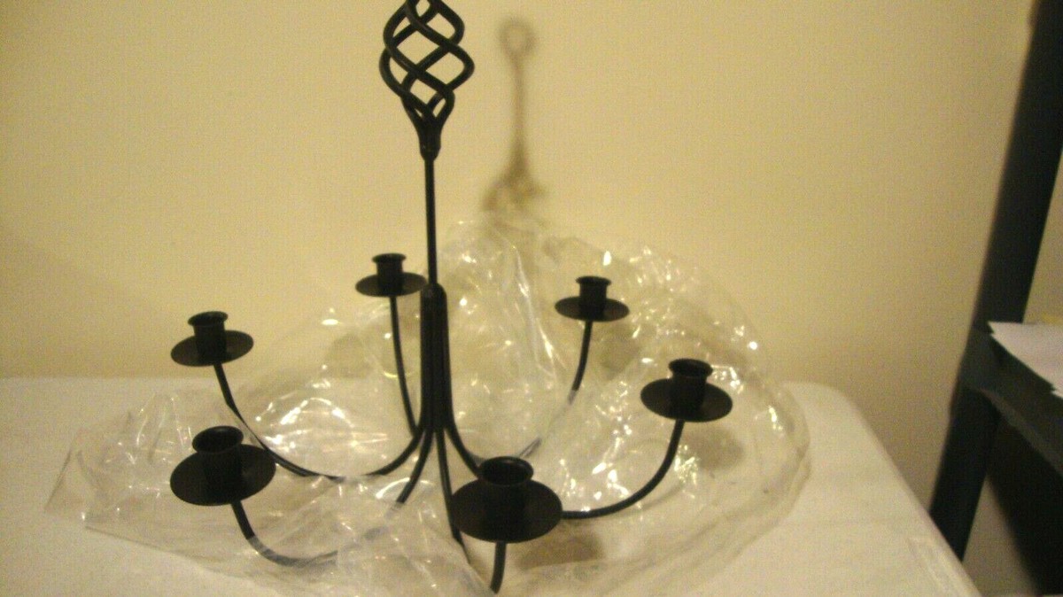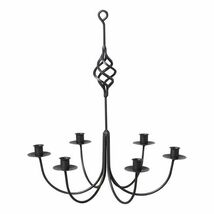 Here is a new smaller size hanging candle chandelier, this is for use with battery candlesticks or candlesticks, is not electric,This 6 Arm Hanging Candelabra chandelier has a basket design is the perfect accessory for that dark corner in your home where it is not convenient to run electric wires. The chandelier holds 6 regular candles or 6 battery operated tapers of 1" diameter (candlesticks not included), this is a neat chandelier , and a hook to hang on is NOT INCLUDED,and Below is description on it, make sure you measure space before you buy please, and also check out my other new wrought iron lights and my many other nice Home decor and lighting i carry.